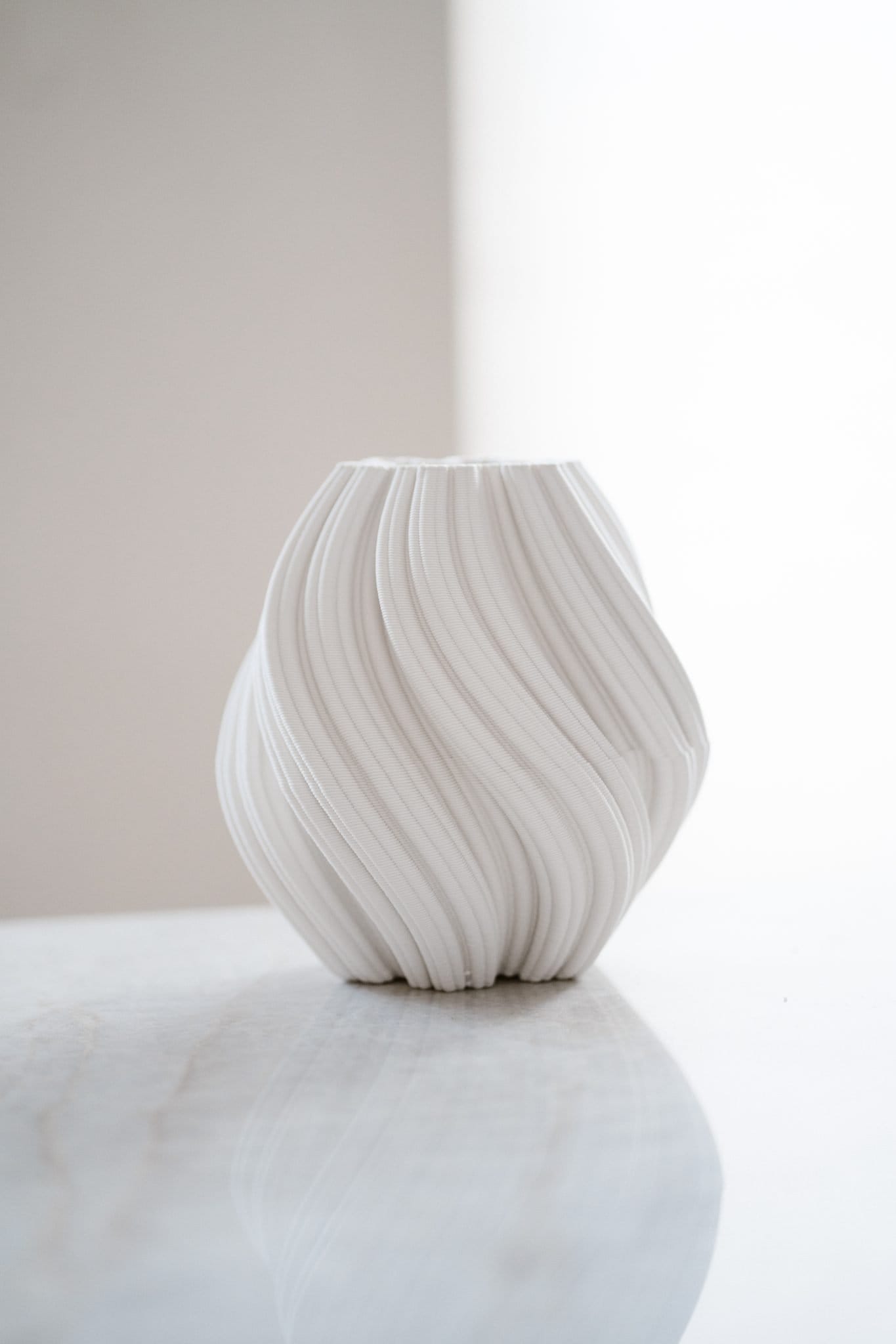Organische vaas | 3D geprinte twirl vaas | Japandi stijl | Vaas wit keramiek