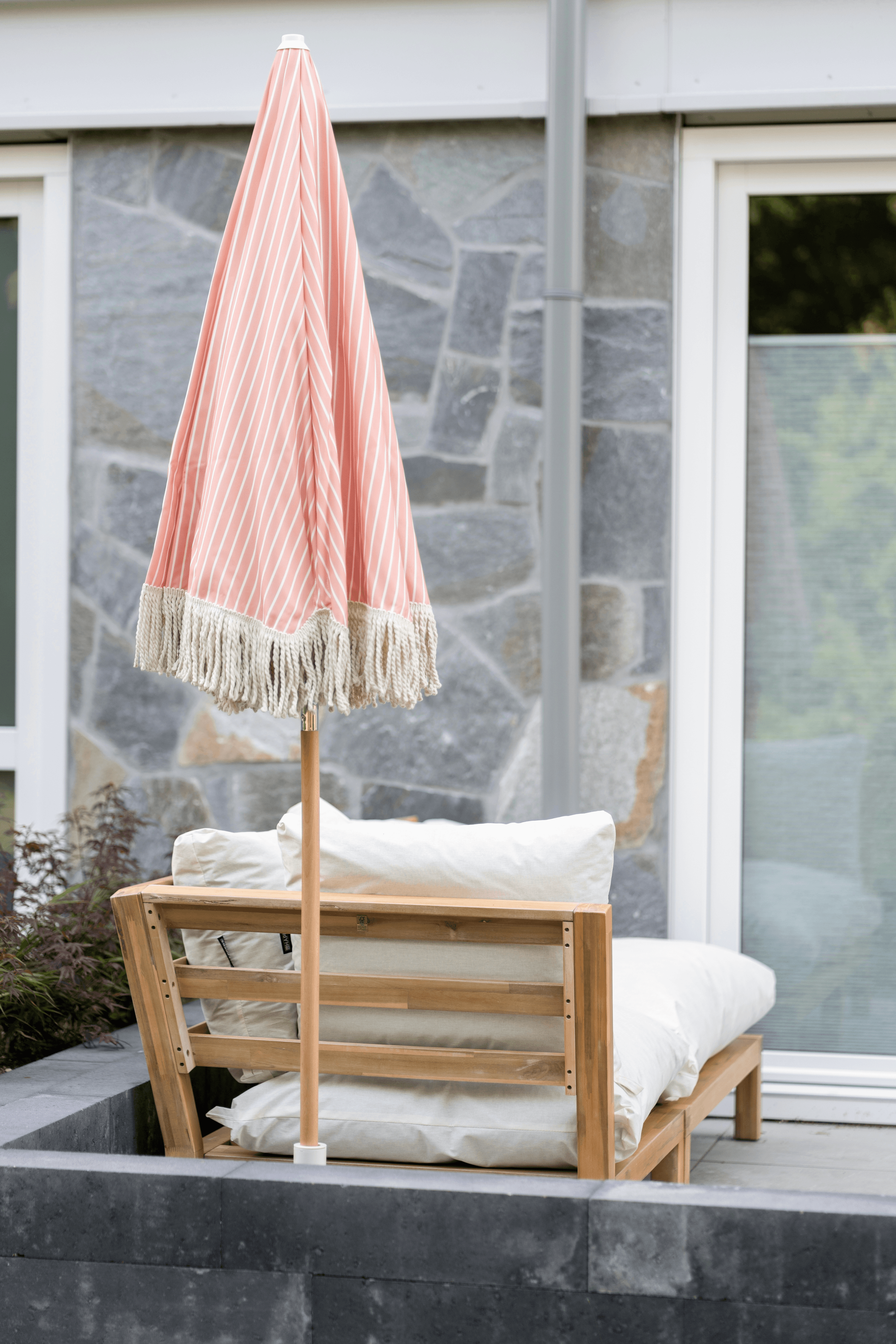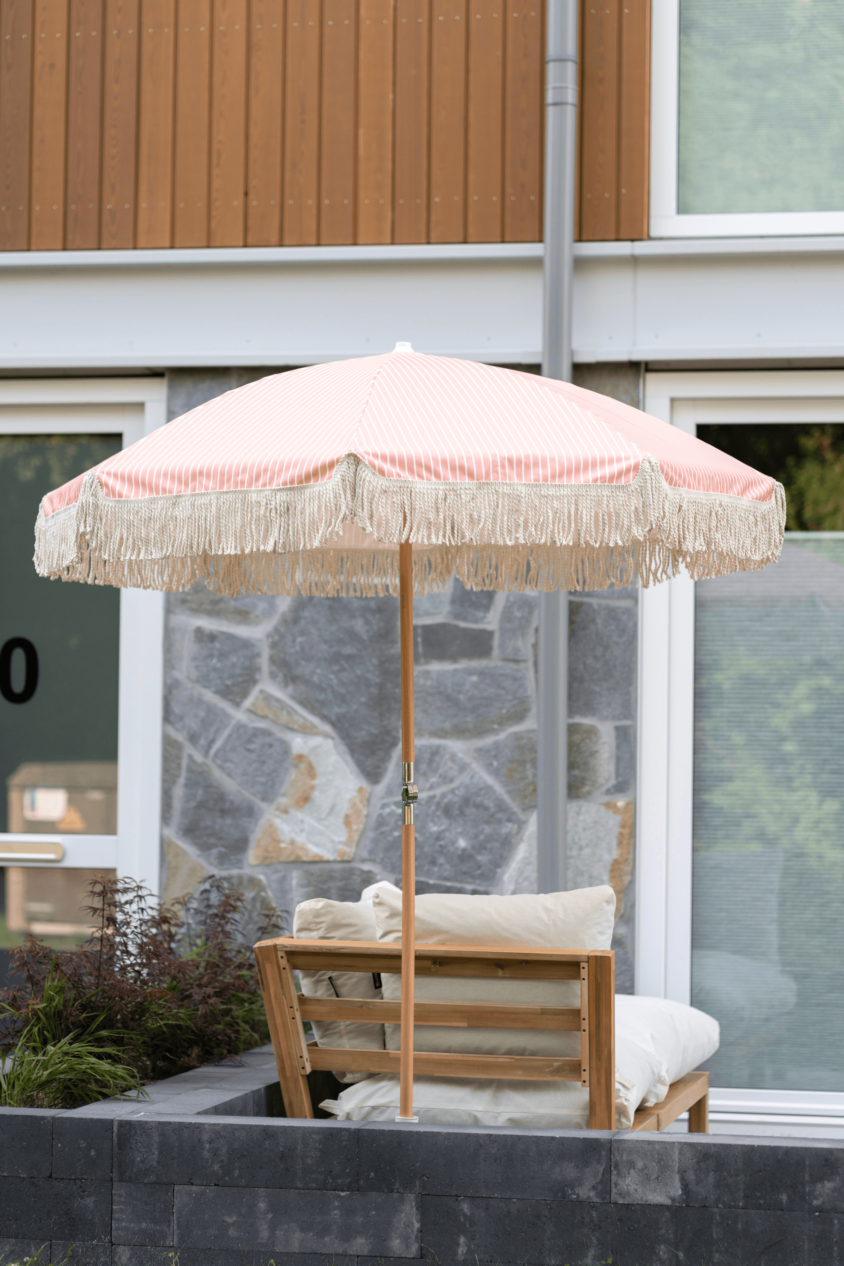 Strand parasol beige met roze in boho stijl | Strandparasols patroon | Tuin parasols met printjes